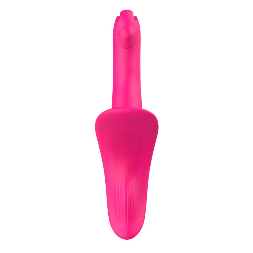 Розовый поясной вибратор с пультом ДУ. Вибратор вставляется в отверстие трусиков: фаллическая часть остаётся снаружи, а мягкая вибровкладка в трусиках ласкает клитор. 7 режимов вибрации. Трусики универсального размера (S-M-L). Рабочая длина - 12,8 см.