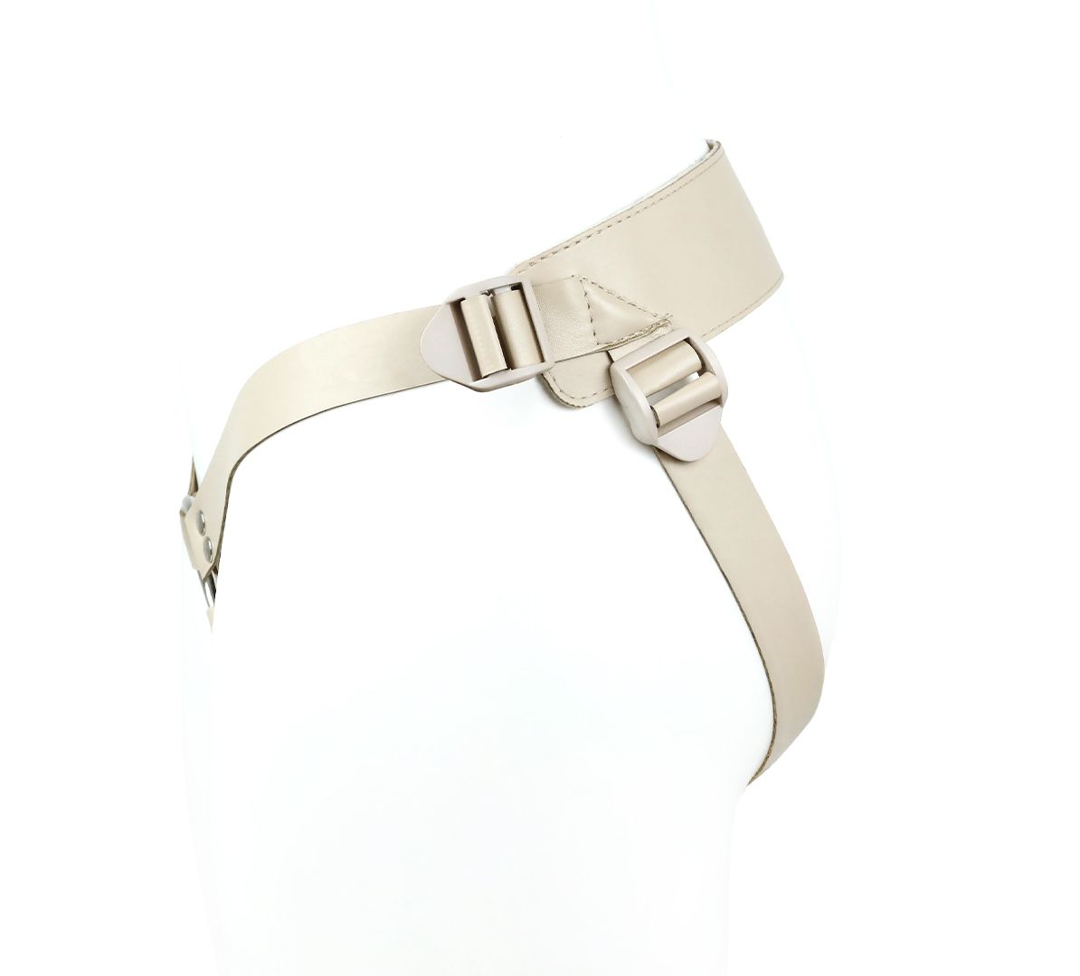 Пояс–кольцо: универсальный для реалистиков с присоской и плагов. Cнабжена кожаным бандажным поясом на бархатном основе и фастексами-быстросьемами. Модель подходит как мужчинам, так и женщинам. Регулируется по форме тела всего один раз. Дальше просто расстегивается с помощью пряжек-фастексов и надевается в следующий раз, как готовое лекало. Металлическое кольцо в конструкции харнесса позволяет использовать любые фаллоимитаторы с присоской. В данной комплектации пояс и насадка прилагаются в телесной цветовой гамме. Такой комплект предлагается для пар, которым важна естественность и максимальная схожесть с обычным интимным контактом.