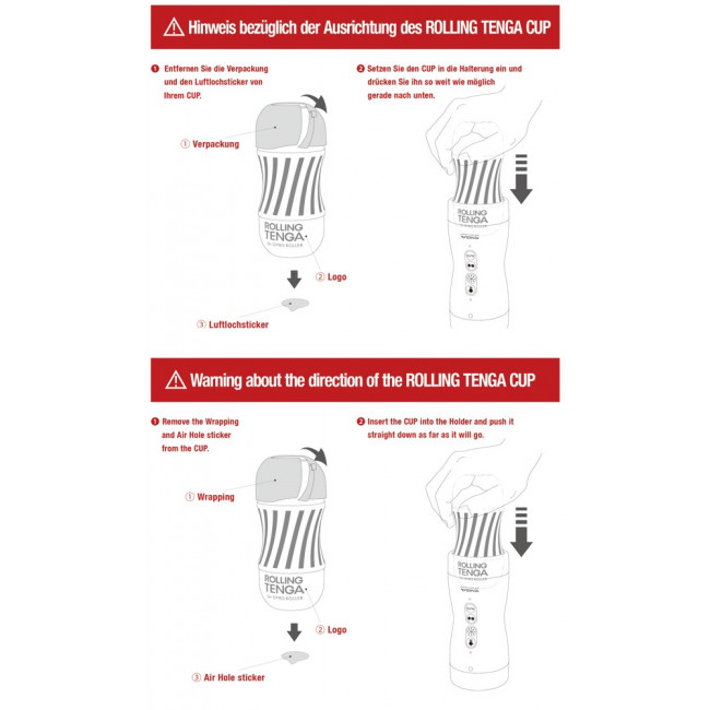 Tenga Gyro Roller Cup совместимы со специальным автоматическим устройством Tenga Vacuum Gyro Roller, которое приобретается отдельно. Мастурбаторы серии Tenga Cup созданы для одноразового использования.
