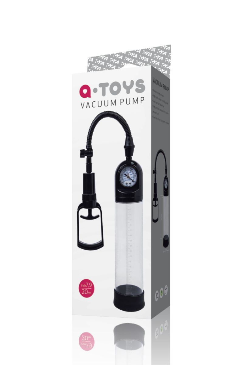 Чёрная вакуумная помпа A-toys с манометром и прозрачной колбой.