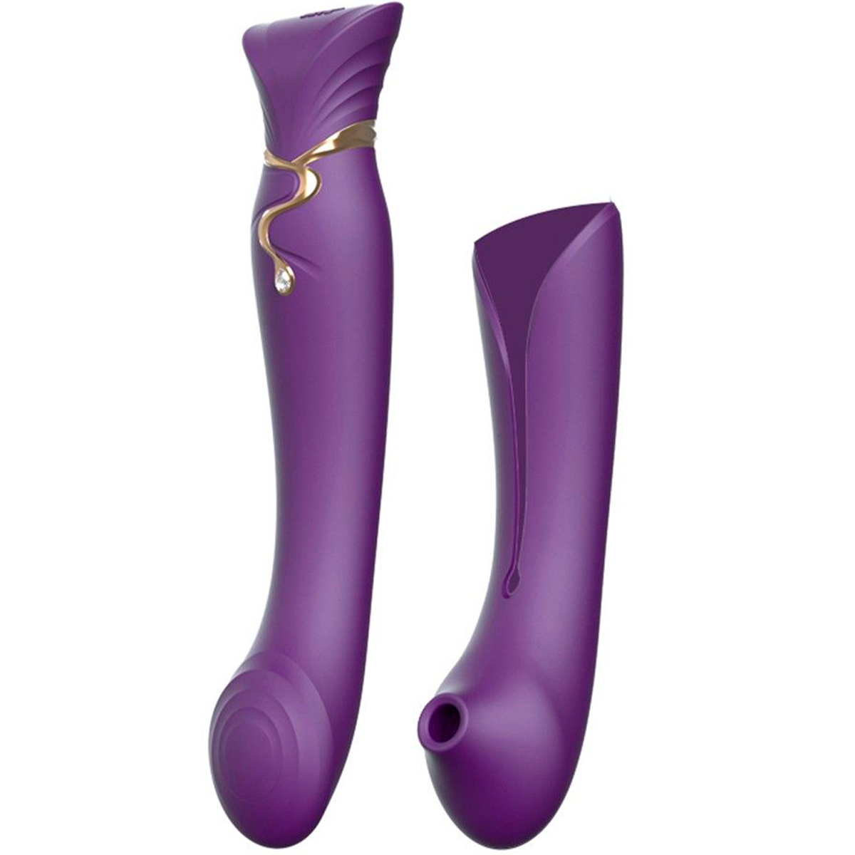 Вибратор с пульсирующей головкой и насадкой для вакуумной стимуляции Zalo Queen фиолетовый