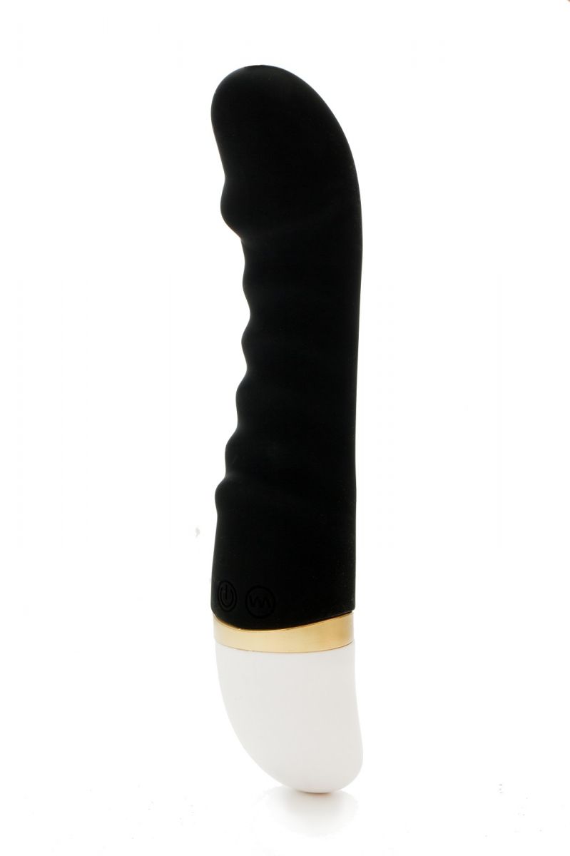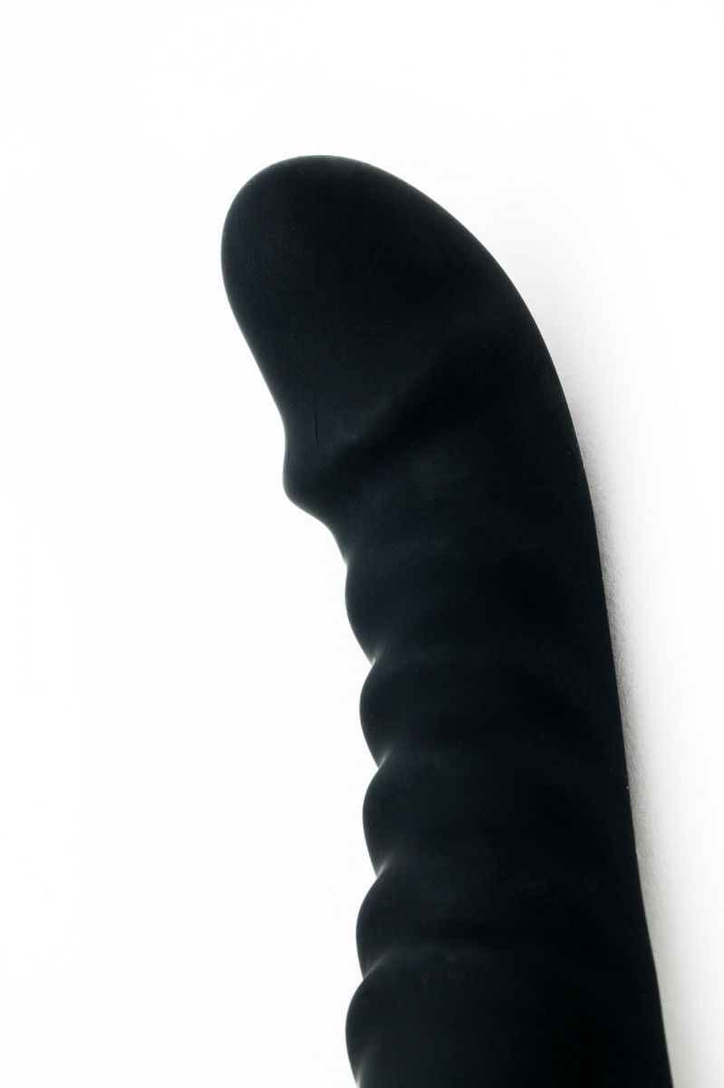 Черный изогнутый вибратор с ребрышками - 19 см.