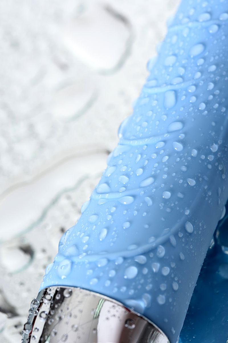 Голубой силиконовый вибратор с функцией нагрева и пульсирующими шариками FAHRENHEIT - 19 см.