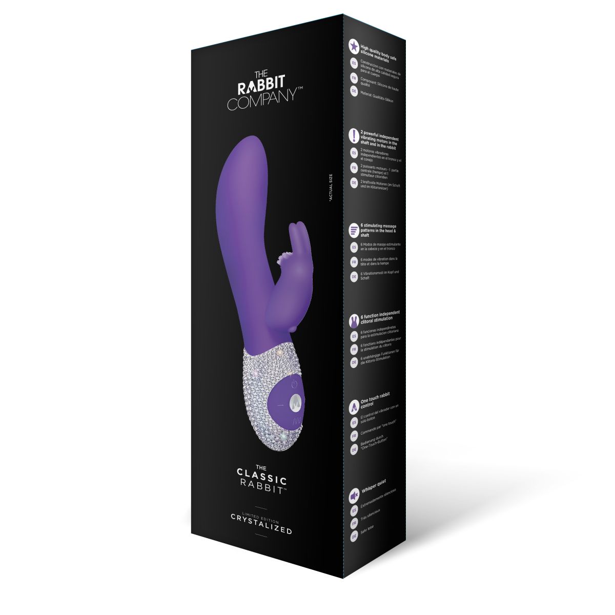 На мордочку клиторального кролика нанесена нежная щеточка для дразнящих ощущений во время стимуляции. Данная модель розового цвета из ограниченной коллекции CRYSTALIZED - пульт управления вручную украшен супер переливающимися кристаллами. Кролик имеет очень легкое управление - чтобы включить кролика используй отдельную кнопку включения, тогда одновременно заработают и вагинальная часть и клиторальный зайчик.