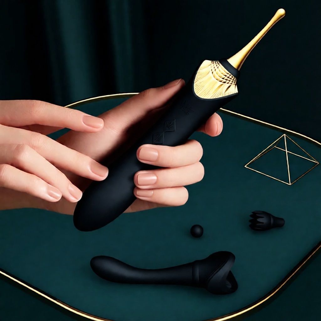 Массажёр Zalo Bess дополнен технологией DirectPower Technology, которая обеспечивает максимально эффективную точечную стимуляцию внешних эрогенных зон. Массажёр имеет большую мощность - до 10 тысяч вибраций в минуту. В комплект входит изящный мешочек для хранения, сшитый из нежного шёлка, и три сменные насадки - шарик, щекочущий лепесток и G-spot для мощного воздействия.