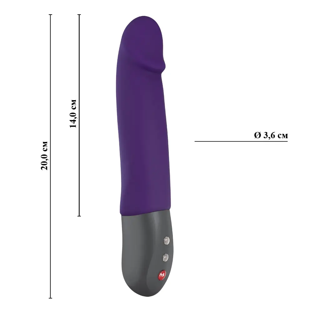 У Stronic Real анатомичная форма с выраженной головкой для максимально удачной стимуляции зоны G. Размеры строников второго поколения Fun Factory более скромные, длина проникновения этого пульсатора составляет 14,5 см, а диаметр 3,5 см. Из режимов на выбор есть 3 варианта пульсации и 7 видов интенсивности.