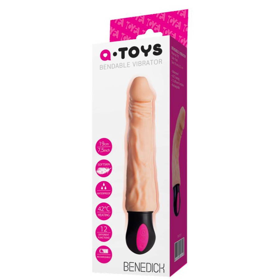 Телесный гнущийся вибратор с функцией нагрева - 19 см. - lovestoryshop.ru