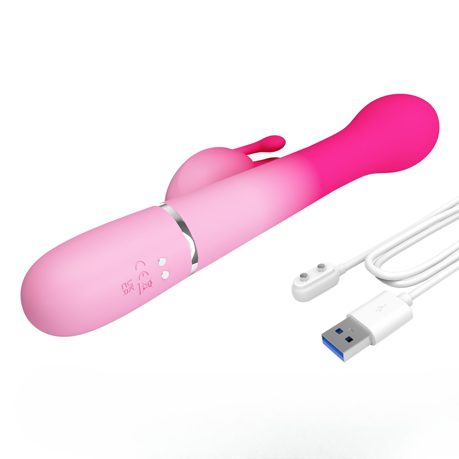 Силиконовый вибратор с 7 режимами вибрации, 4 режимами ротации, 4 режимами возвратно-поступательных движений. Два мотора и движущиеся шарики для точки G. Кнопка для мощного оргазма. Заряжается через USB. Рабочая длина - 12,5 см.