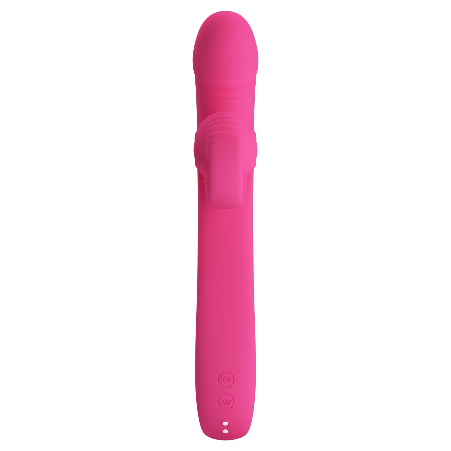 Розовый вибратор Beau с подвижным отростком-улиткой - 23 см.