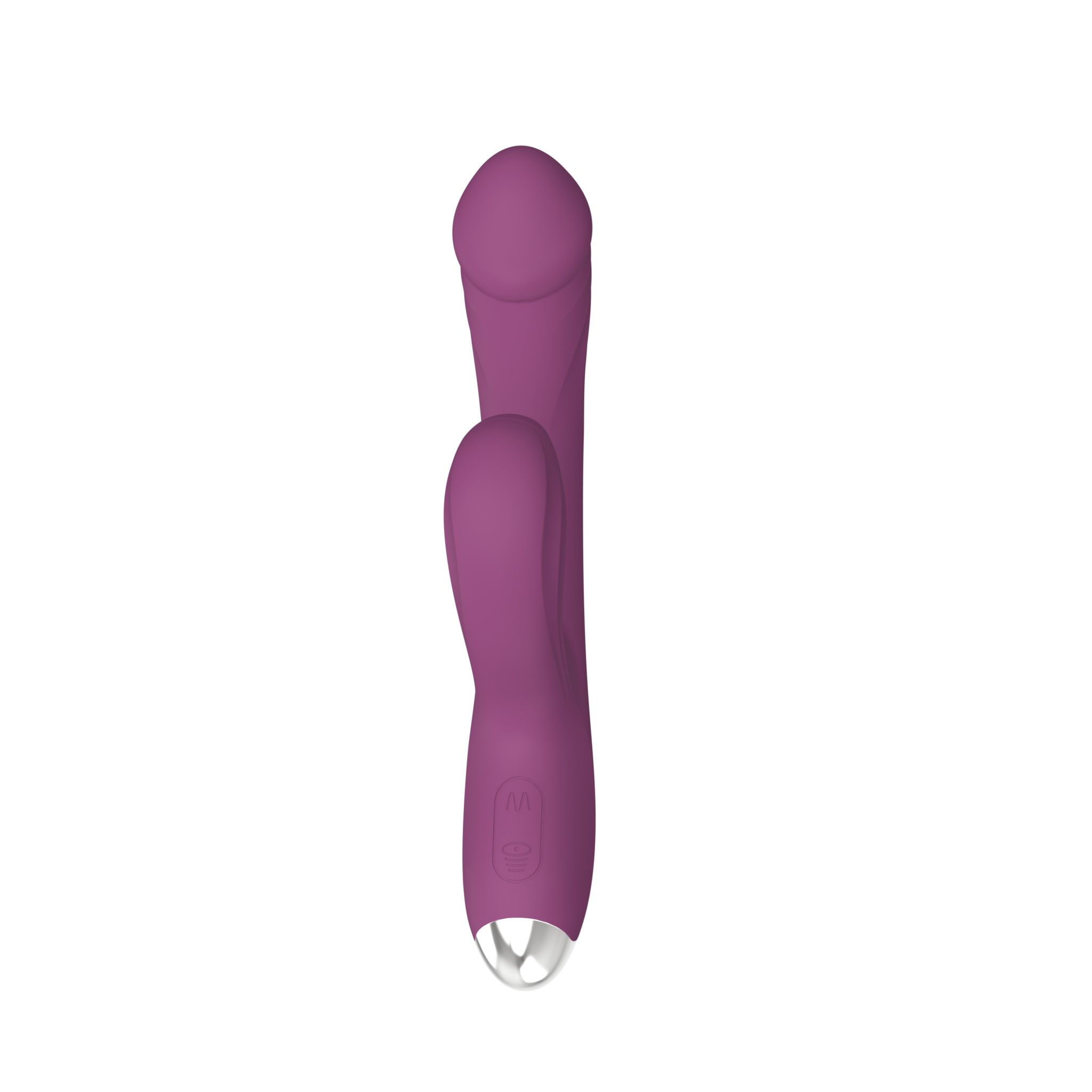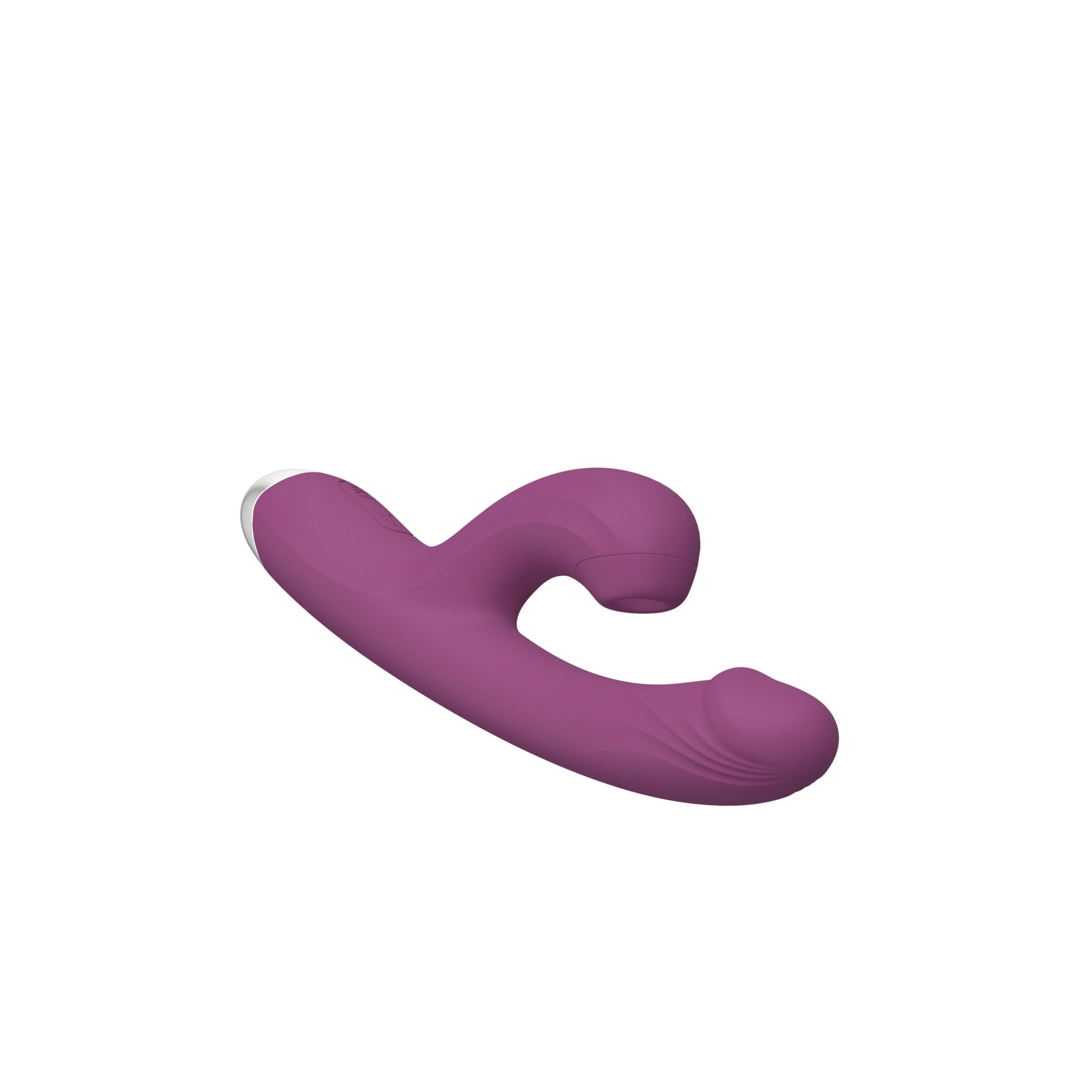 Фиолетовый силиконовый вибратор-кролик с вакуумным клиторальным отростком - 20,5 см. - lovestoryshop.ru