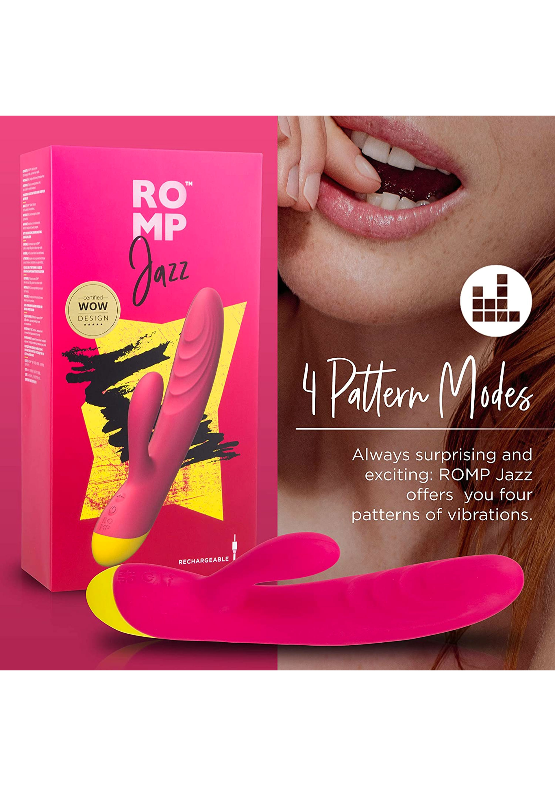 Открыть беспроигрышное сочетание стимуляции зоны G и головки клитора поможет вибратор-кролик ROMP Jazz. Он выполнен из медицинского силикона, гладкого и приятного на ощупь.
