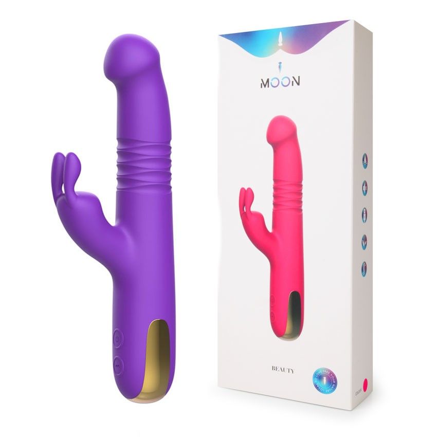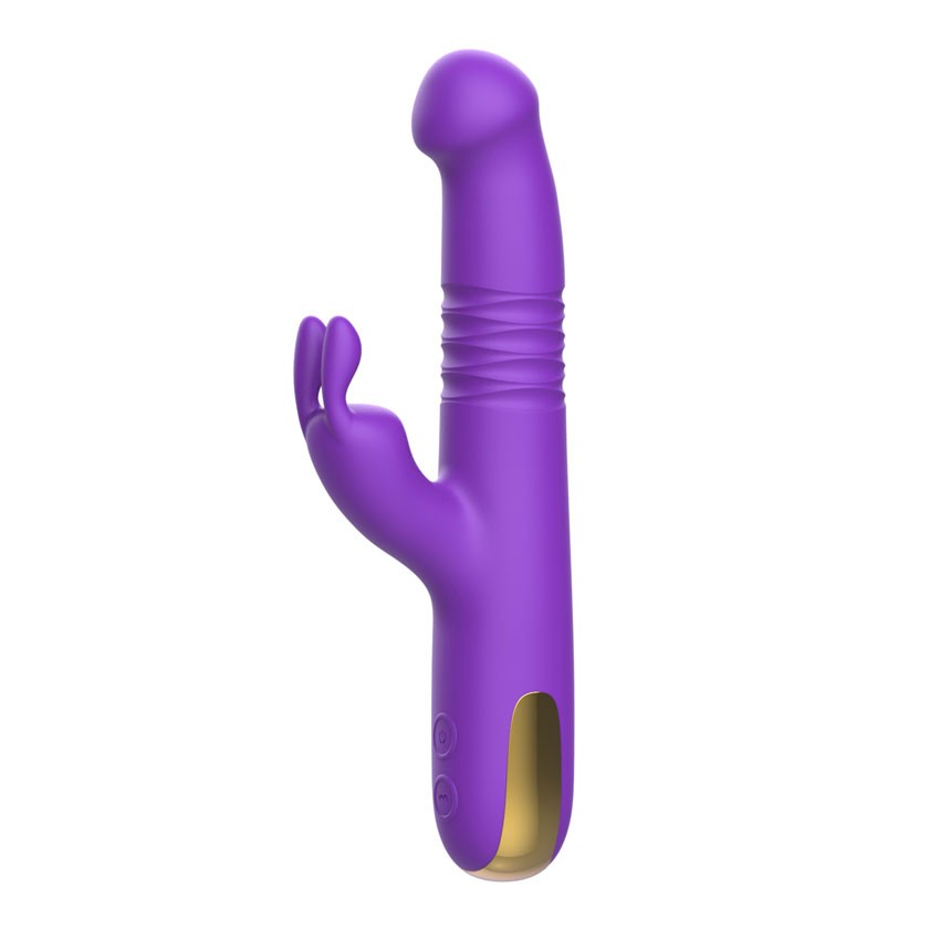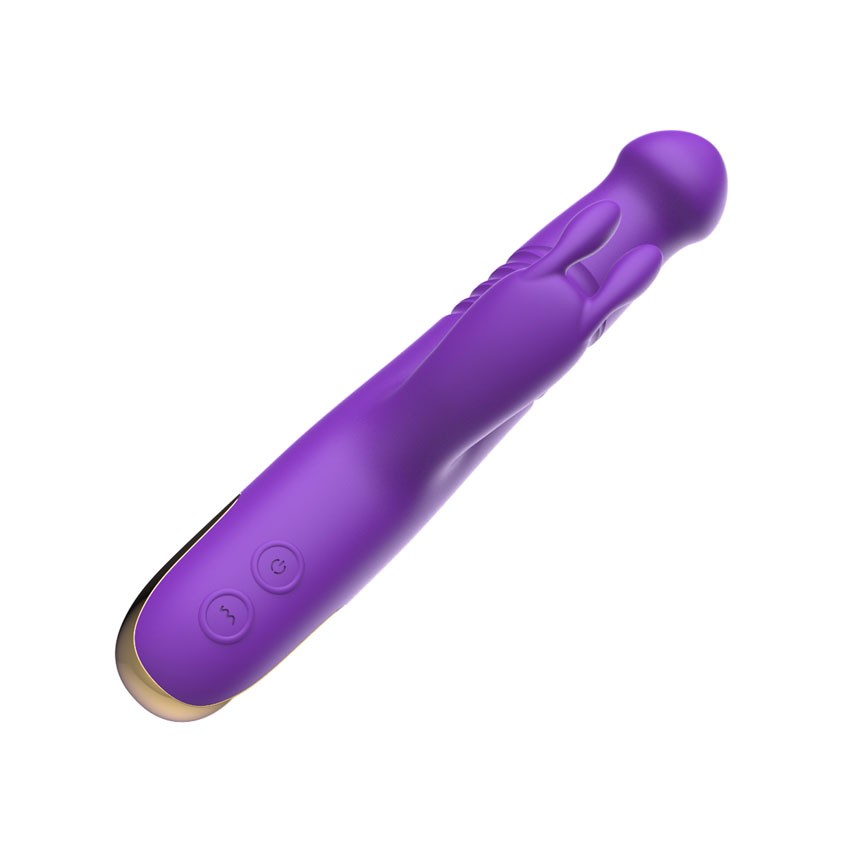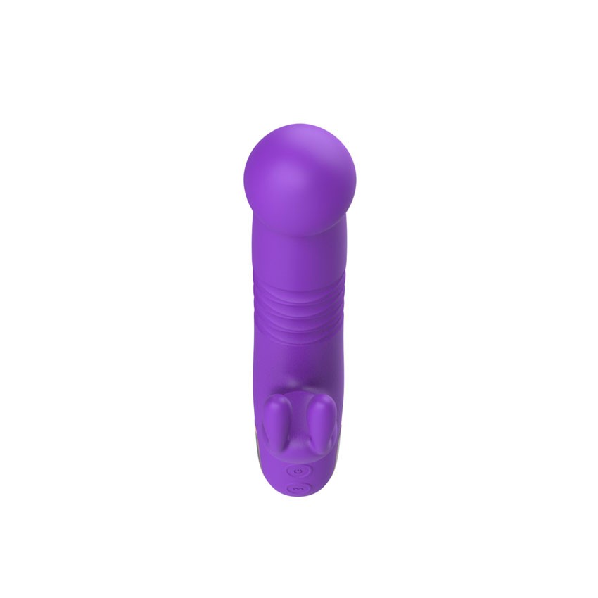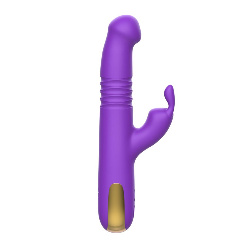 Фиолетовый вибратор-ротатор со стимулятором клитора и возвратно-поступательными движениями - 22,4 см. - lovestoryshop.ru